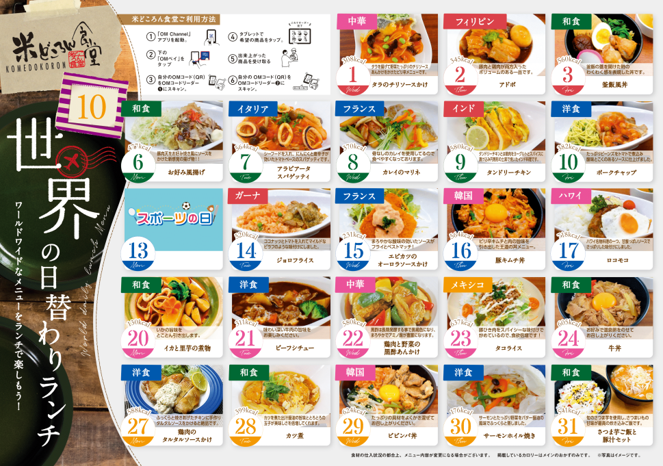2025年10月度『世界のメニュー』をアップしました。 詳しくは、コチラをご確認ください。