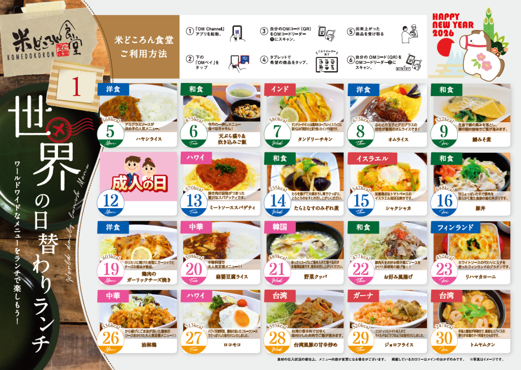 2026年1月度『世界のメニュー』をアップしました。